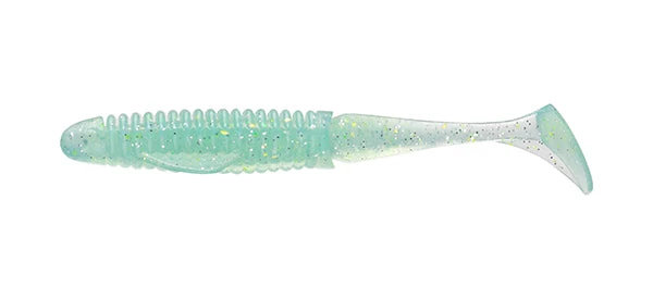The BooStar Wake – “Smooth Operator” a refreshing contribution to soft swimbait creations. The Boostar Wake glides through the water in a soft, straight, and natural rocking posture. While maintaining its course during the retrieve the post region of the lure actually moves independently of the fore region creating a second action. This is followed by the thinned kick-tail which makes a third action. The 3 actions combined give the BooStar a natural bait-fish movement. The lure has top and bottom hooking channels for rigging versatility.