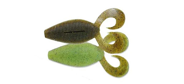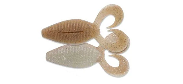 The Geecrack Spiron Twin was designed to mimic a bluegill. Â The flat body design creates a unique gliding action when rigged weedless, and the twin grub tails on the back increase in thickness as they move away from the body, giving them a completely new kicking action. Â The Spiron Twin is a great bait to fish on its own or as a jig trailer. Â The Spiron Twin is made from Geecrack’s famous S.A.F. plastic which is highly salted and flavored to help entice the fish to hold on longer.