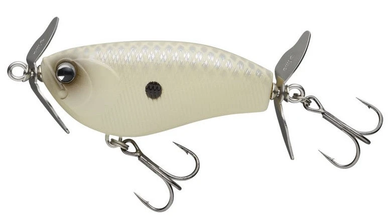 The Ima Helips is a floating prop bait designed with 2 squeaky props, one in front, and one in back, built to churn the water as it moves across the surface making it perfect to work over shallow cover or around bedding bass.Â