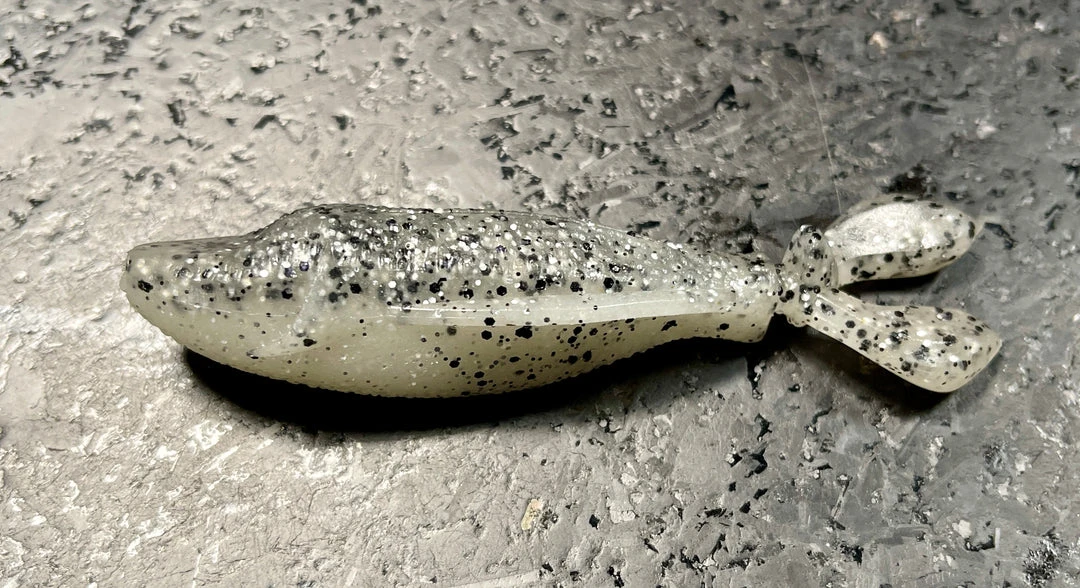 Super heavy weight swimming stick bait designed to give a different look from a cover scat. Rear fins kick as the bait falls, and side planing fins keep the bait is a glide posture.