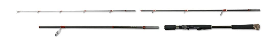 This unique multi-piece expedition series features a shaft engineered with four layers of super lightweight, high sensitivity carbon and high elasticity glass fiber. The unique resilience of glass distributes the load of heavyweight lures along the length of the rod, while the carbon material’s astonishing power and sensitivity give the rods incredible refinement. These features create an indomitable shaft that can easily launch magnum-sized lures. The overwhelming power and torque made possible by the synergy of the two component materials will shut down the intense pulling power of target fish. The glass material can dynamically absorb and adapt to the violent attacks of monsters, greatly reducing the risk of lost bites. It secures slim-chance hook ups and successfully lands target fish. This composite shaft will allow you to decisively capitalize on rare opportunities and land those unique prizes.