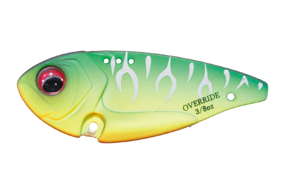 The Over Ride” has equipped special performance of lift and fall action because every part of its body has significance. It has long castability and ability to swim same depth. If you lift it vertically, it starts to swim quickly and vibrate with sharp high pitch. You can sense this action from a distance. If you let it sink, it falls sideway many times lively. It has variety of fall posture like right curve, left curve, straight fall. That is why it can entice more bite because bass can never detect lure. These many kinds of slide fall and strong vibration created by vertical lift work effectively under high pressure condition. So, “The Over Ride” is the ultimate reaction bait to catch big bass.