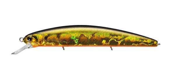 The Varuna 110SP is a flat side concept minnow that creates more flashing effect and water drive than round body minnow. The small-diameter triple tungsten center of gravity movement allows the weight to reach near the tail, achieving accuracy and long cast performance with a stable flight attitude. This also contributes to the unique sound and lowering of the center of gravity of the weight, and by fusing with the Honeycomb Super HP body (PAT.), Which is both lightweight and strong, it has a high response and a good start and go action, even on a straight retrieve.