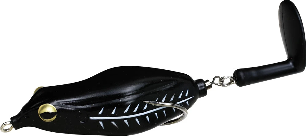 The Teckel USA Sprinker Frog has the same patented, lean amphibian design as their other well loved frogs, but with a twist. The Sprinker Frog features a whopper-plopper style soft plastic tail that rotates and kicks upon retrieval to create just the right amount of noise. Walk it cover cover like and other frog, then burn it to bring the big bass out of hiding with an attractive kick!